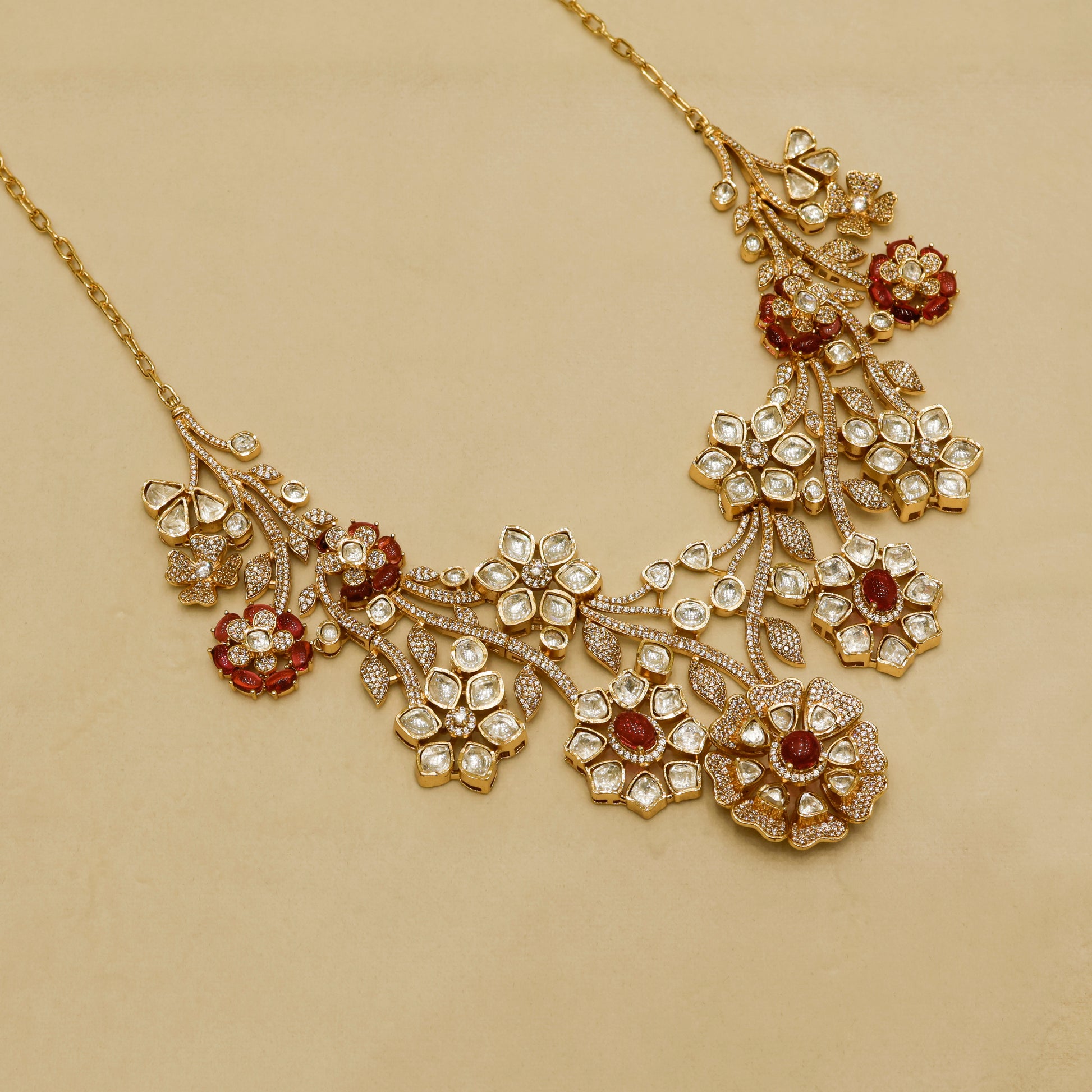 Aanura Floral Kundan Bridal Necklace Set with Earrings