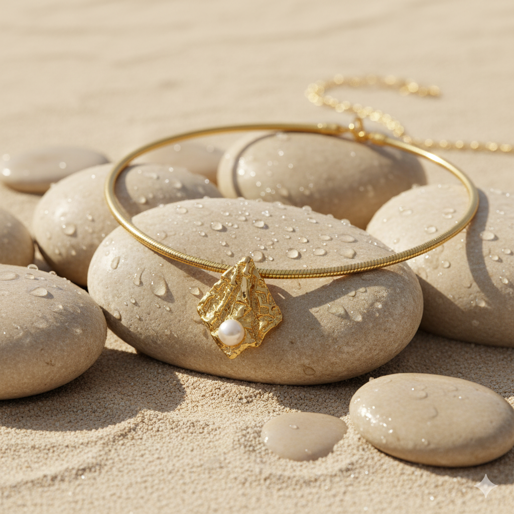 • Design: Flexible Choker with Textured Pendant & Pearl Accent