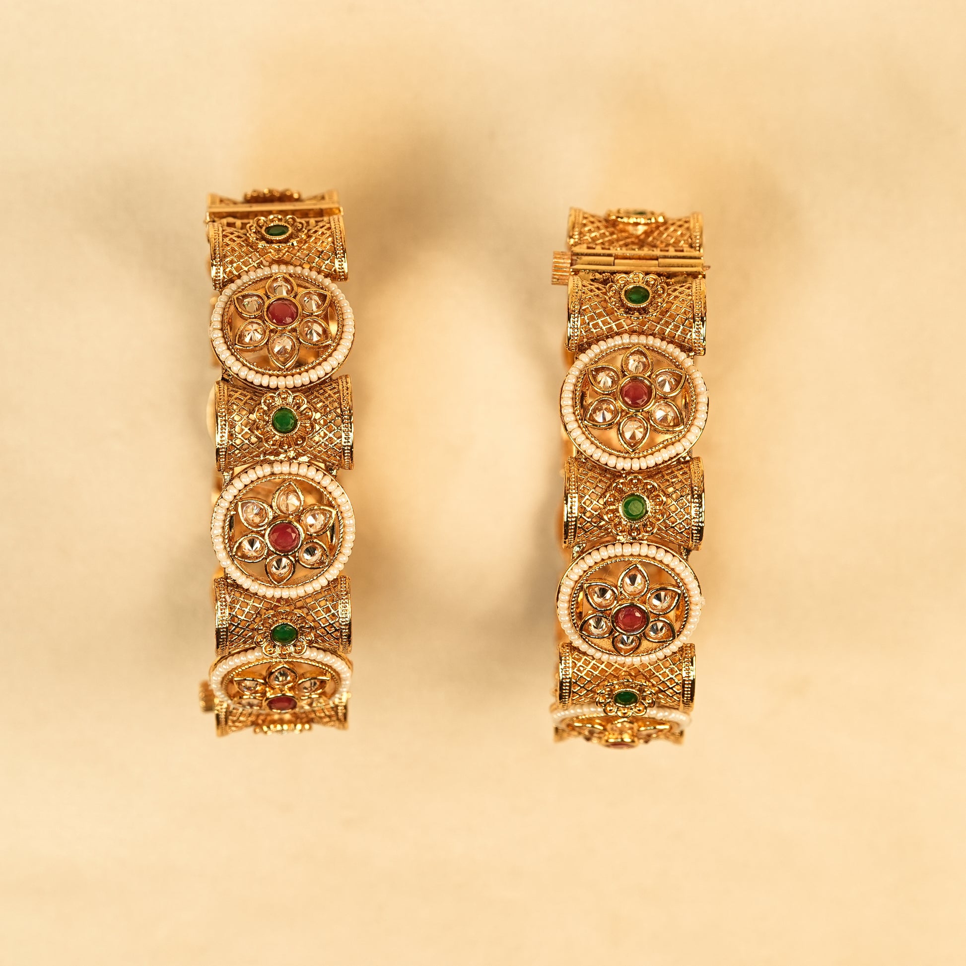 Aanura Gold Plated Heritage Stone Bangle Bracelet