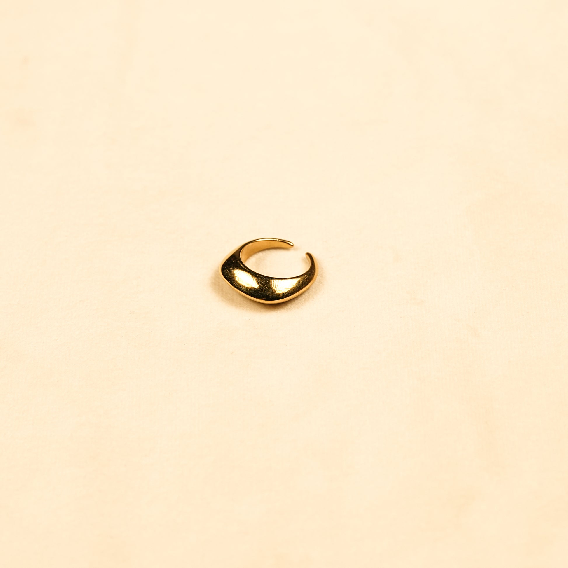This elegant Aanura statement ring features a fluid sculpted curve design with a smooth, high-polish surface that catches light effortlessly. Minimal yet bold, the organic form adds a modern artistic touch, making it perfect for women who appreciate understated luxury with a contemporary edge. The adjustable band ensures comfort while preserving its refined silhouette.