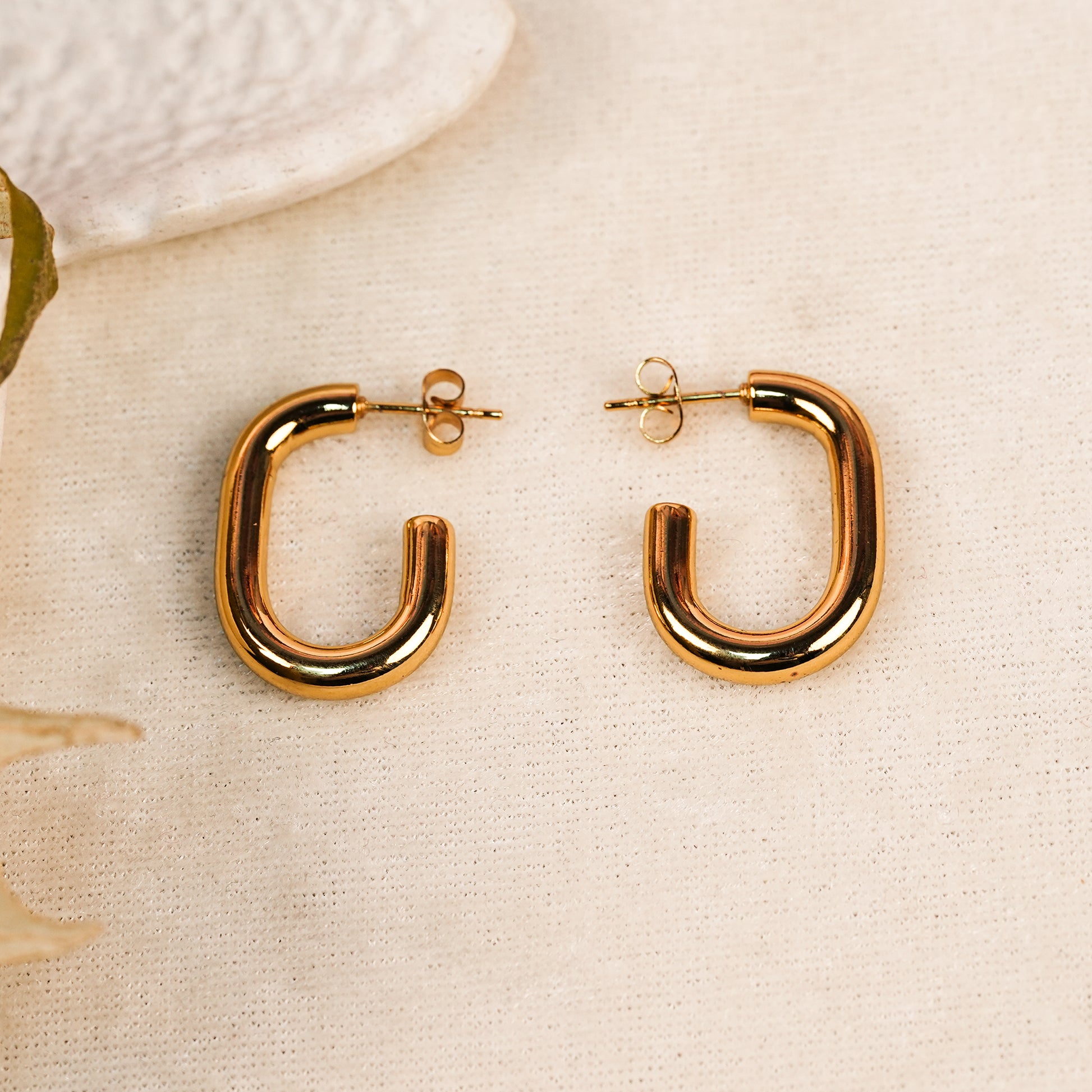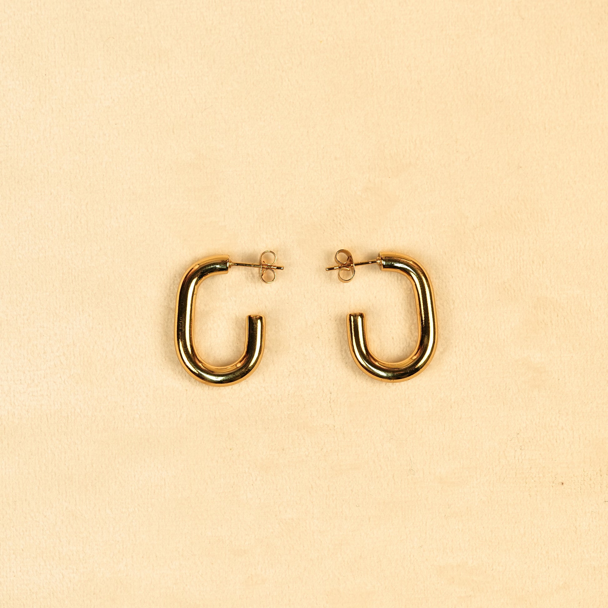 These chic U-shaped hoop earrings offer a modern twist on the classic hoop design, featuring a sleek and polished gold-plated finish. The clean, simple shape makes them versatile for both everyday wear and formal occasions, adding a contemporary flair to any outfit.