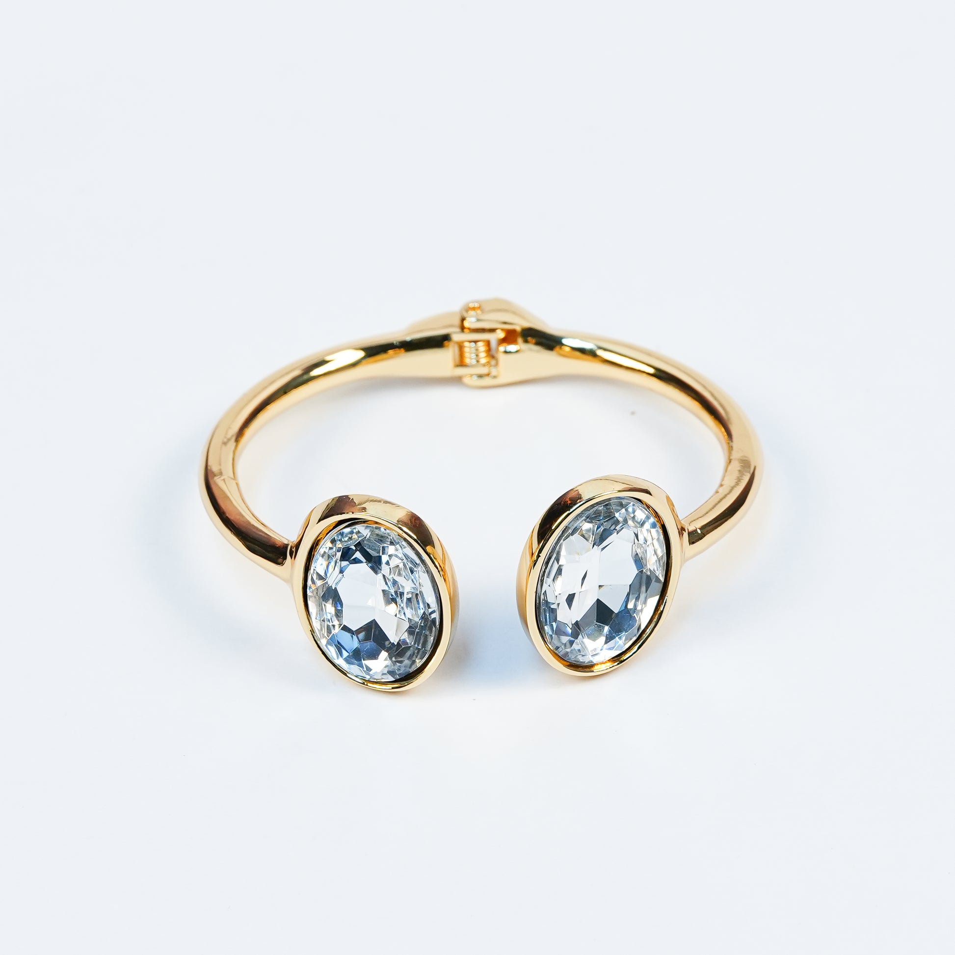 Gold-Plated Open Dual-Stone Statement Bangle Bracelet