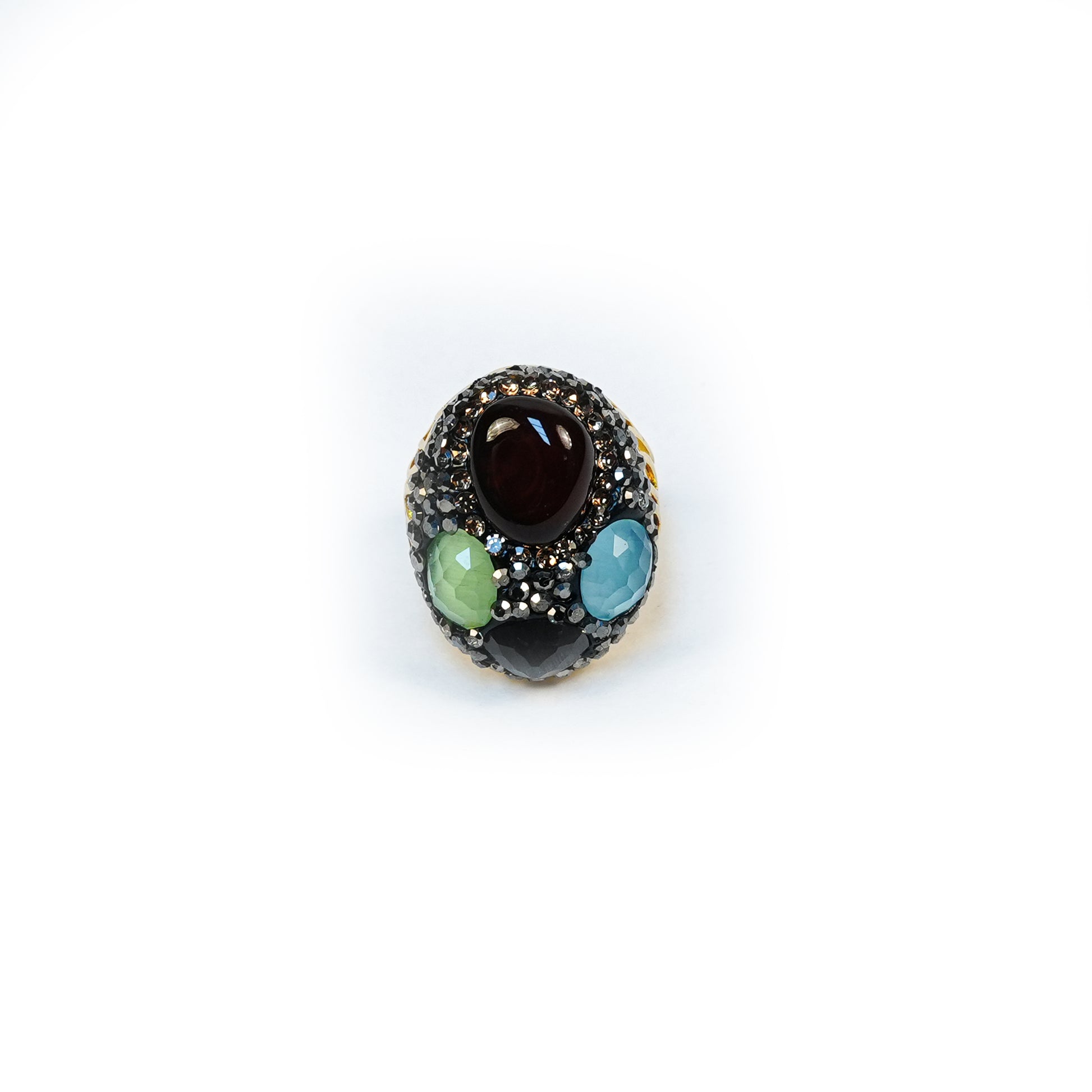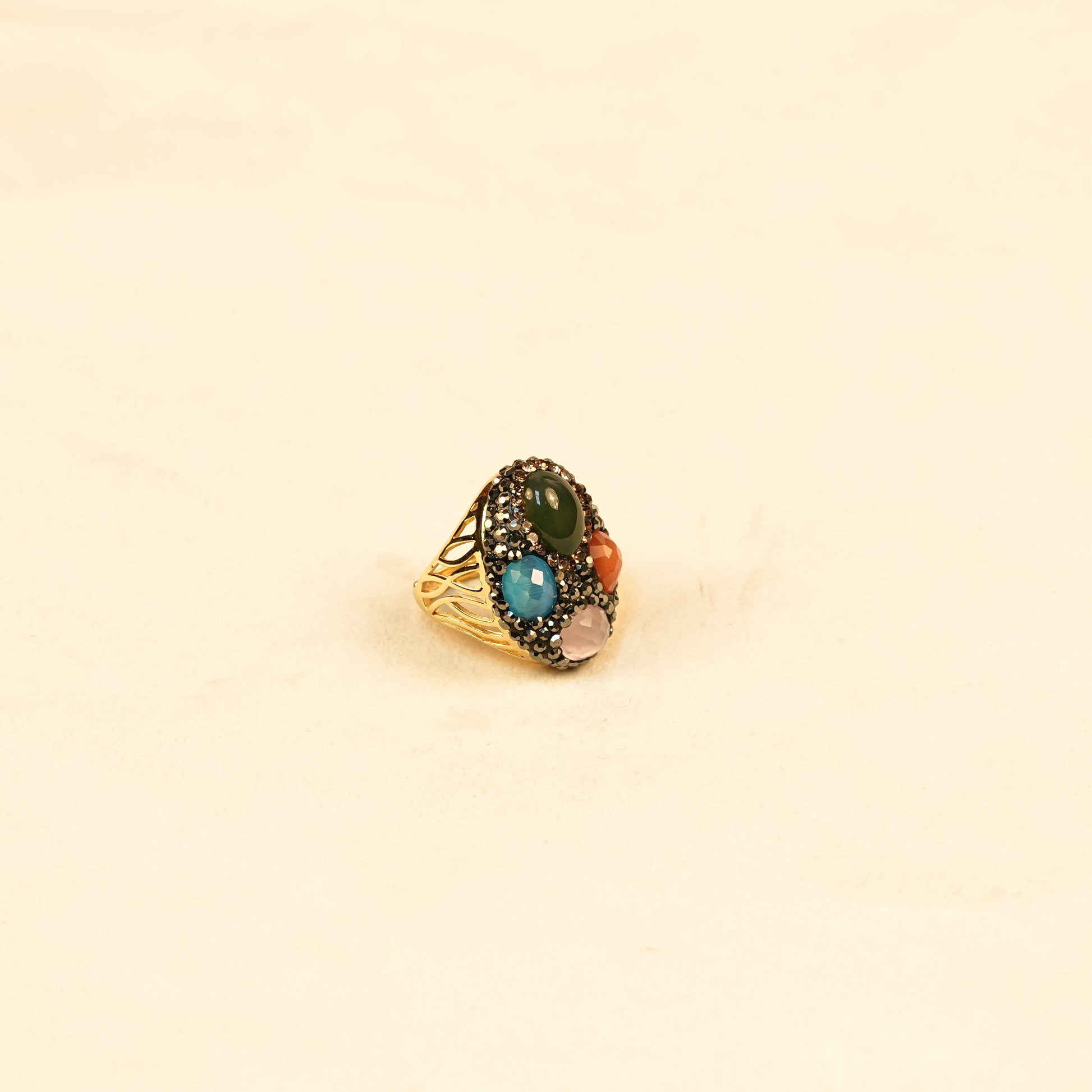 Multi-stone designs symbolize balance, abundance, and versatility. Gold-plated stainless steel represents confidence and strength, making this ring a reflection of dynamic energy, individuality, and refined presence.