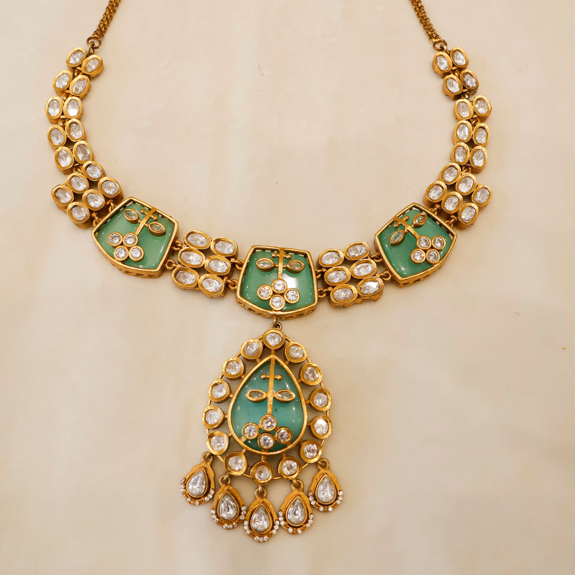 Aanura Green Kundan Pendant Necklace & Earrings Set