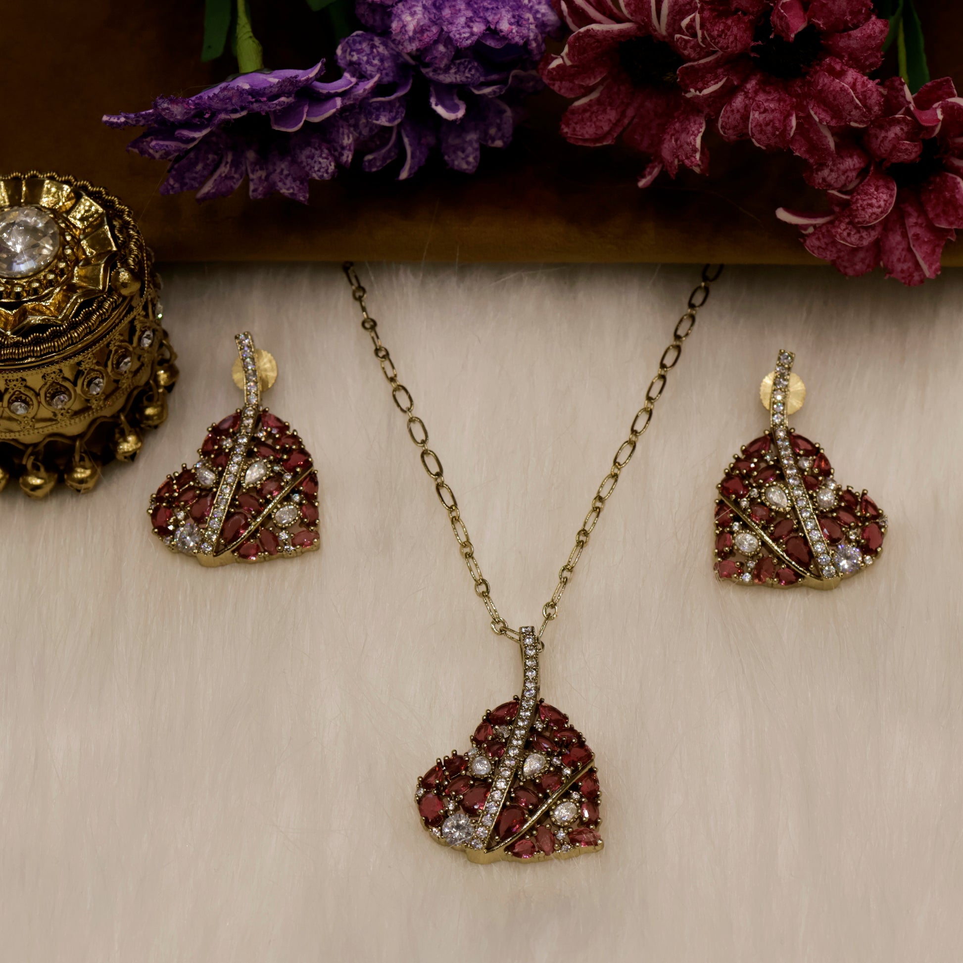 Embrace nature’s charm with the Aanura Jewellery Green Leaf Pendant Necklace & Earrings Set. This elegant design features a chain necklace with a leaf-shaped pendant, encrusted with green emerald-style stones and sparkling cubic zirconia. The matching earrings carry the same leafy pattern, making this set a perfect blend of simplicity and sophistication.