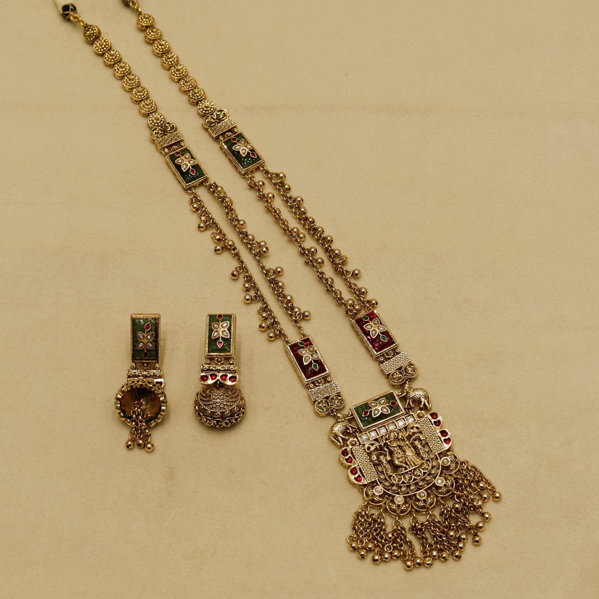 Aanura Heritage Temple Necklace Set with Krishna Motif