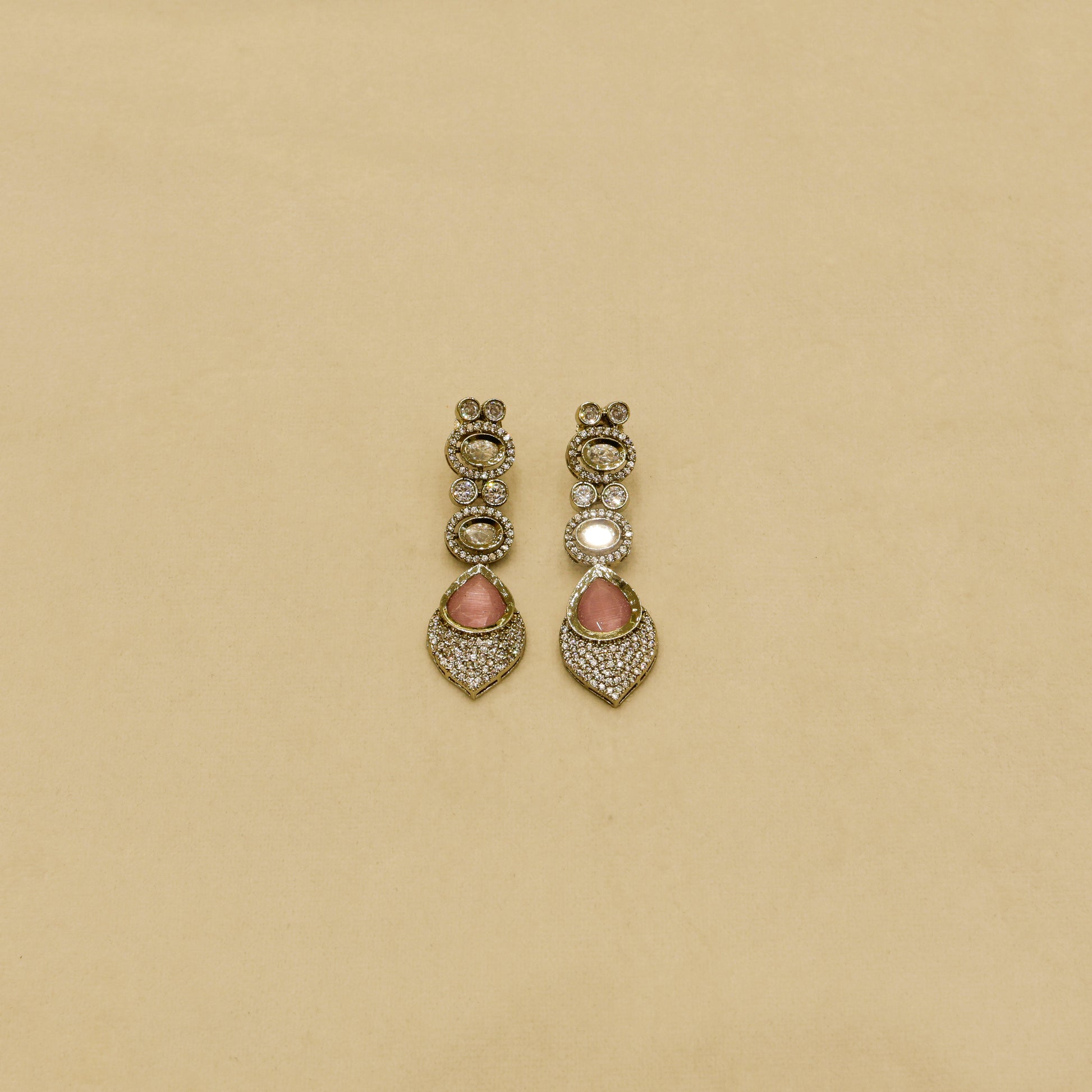 The Aanura Lavender Drop Kundan Necklace Set features an elegant design with kundan-embedded round motifs paired with lavender teardrop stones. The coordinated earrings complete the look, making it a versatile choice for festive and bridal wear.