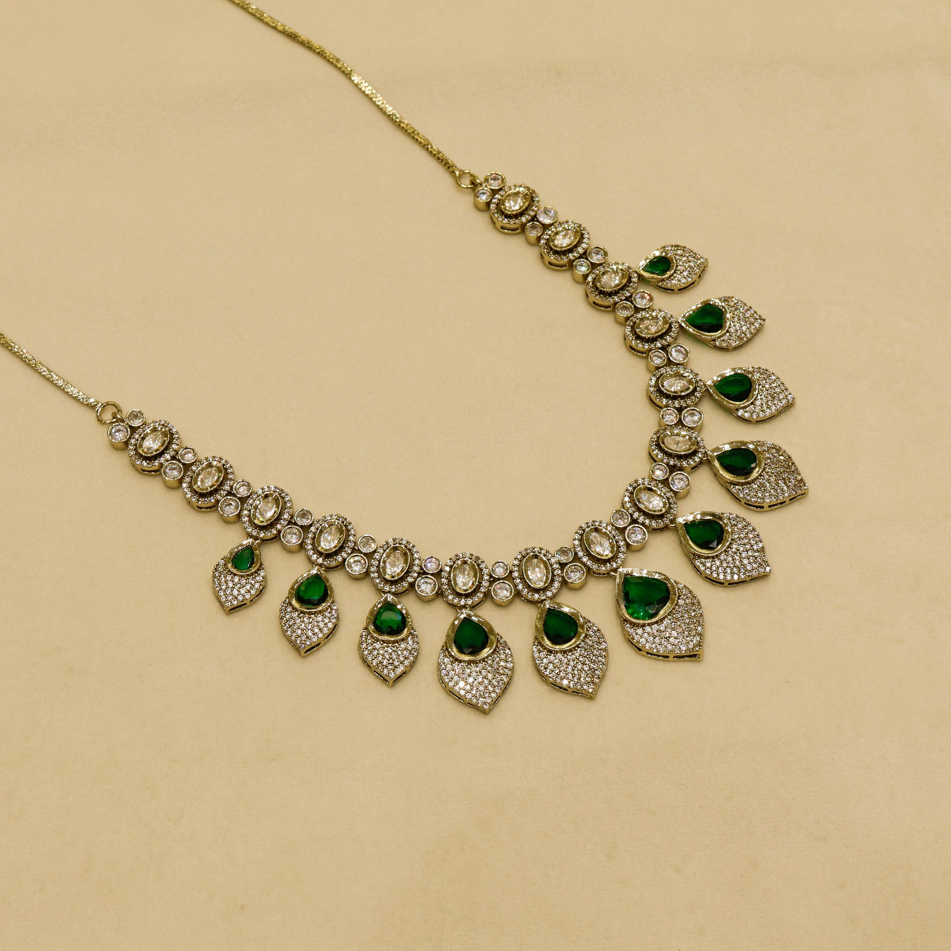 Aanura Lavender Drop Kundan Necklace Set with Earrings