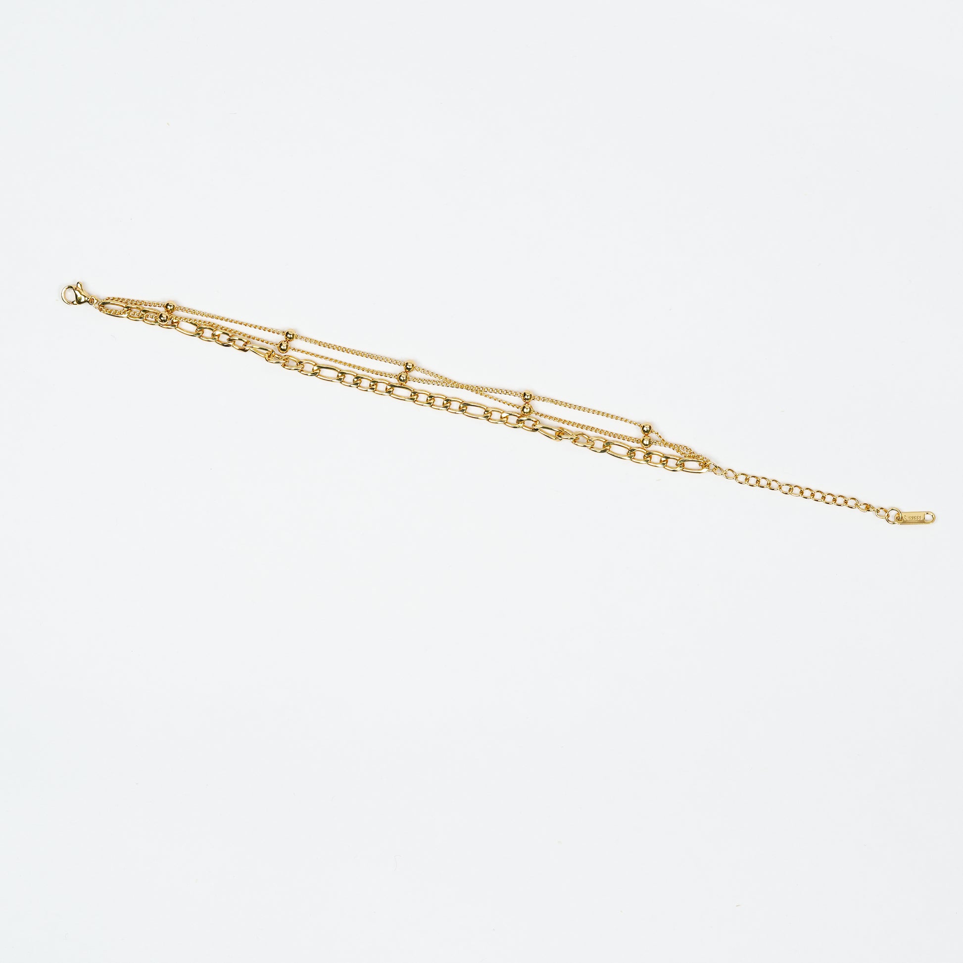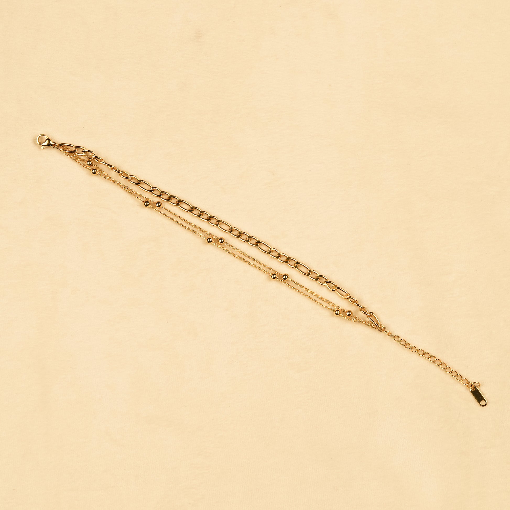 - Design Detail: Layered chain bracelet with mixed link styles and bead accents