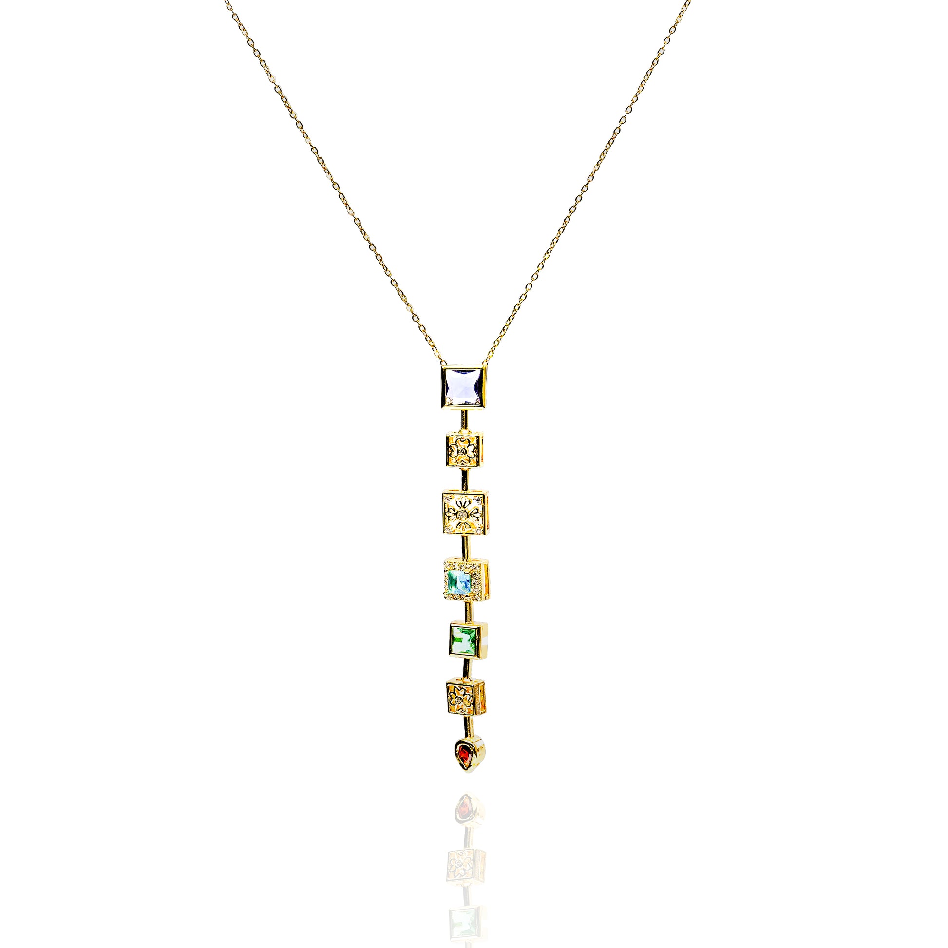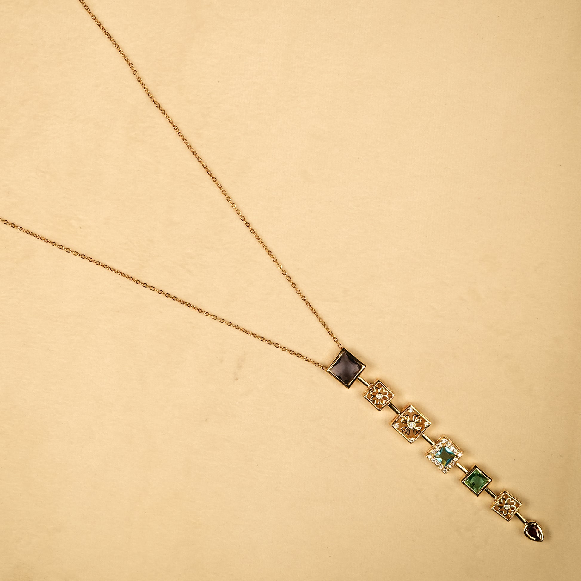 Square forms symbolize stability, structure, and grounded confidence. The linear alignment represents clarity and focus, making this necklace a subtle yet powerful expression of balance and elegance.