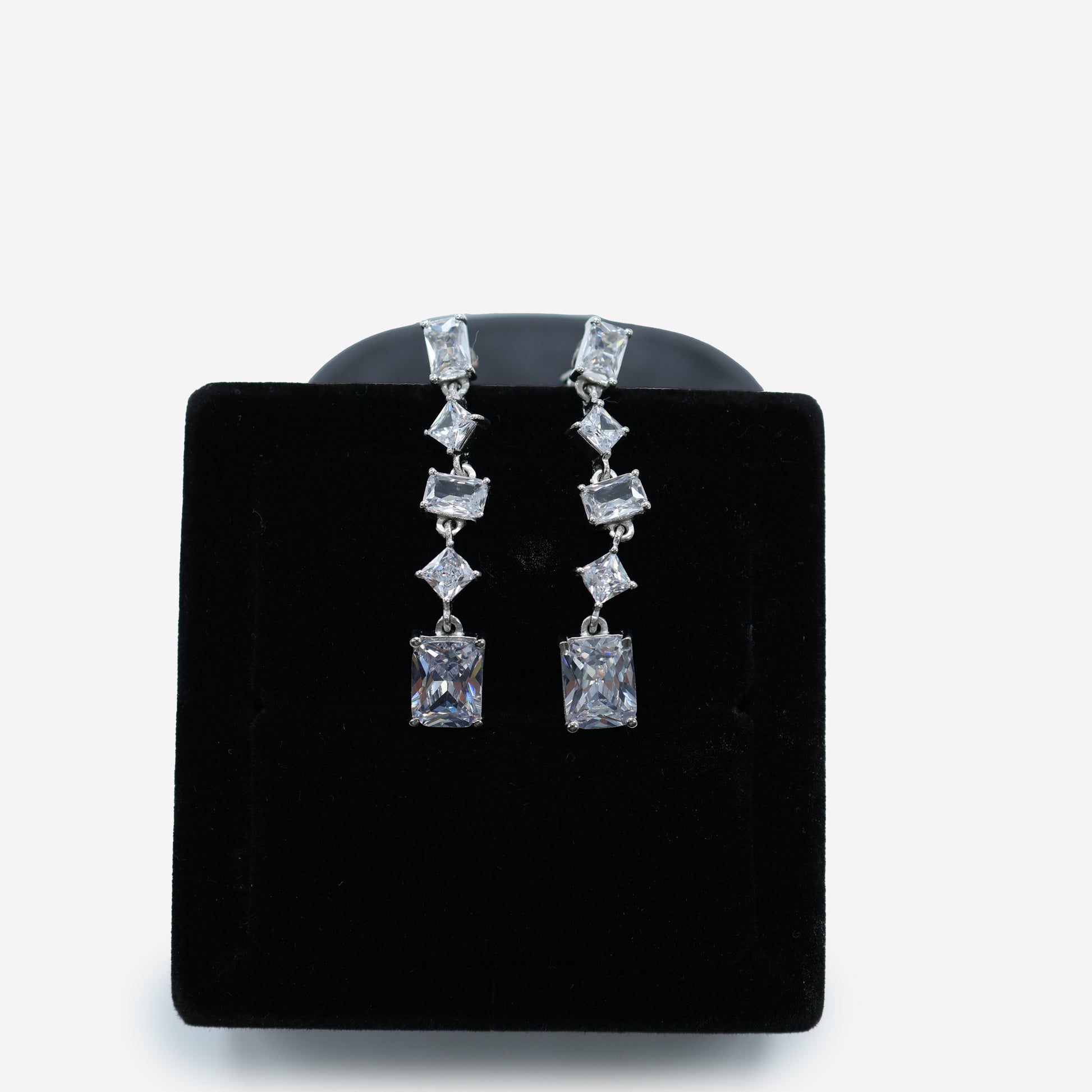 The Aanura Multi-Cut Drop Earrings radiate timeless glamour and brilliance. Handcrafted in hallmarked 925 silver, these cascading earrings feature a series of meticulously cut cubic zirconia stones — a stunning blend of rectangular and princess cuts. The elegant movement and high-shine finish make them perfect for special occasions and evening wear.