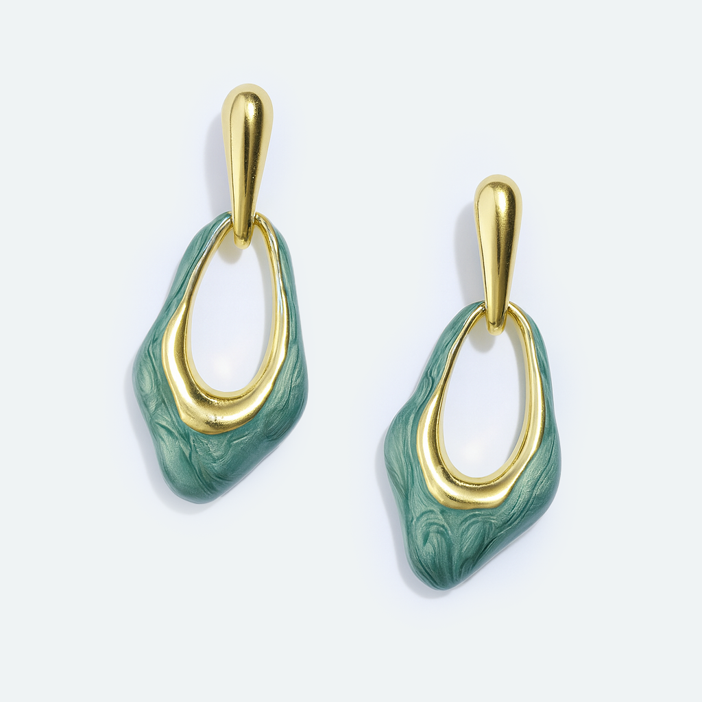 The Aanura Ocean Wave Drop Earrings bring the elegance of nature into jewelry design. Crafted in stainless steel with gold plating, these earrings feature a flowing drop shape with ocean-inspired marbled textures, creating a modern yet timeless accessory.