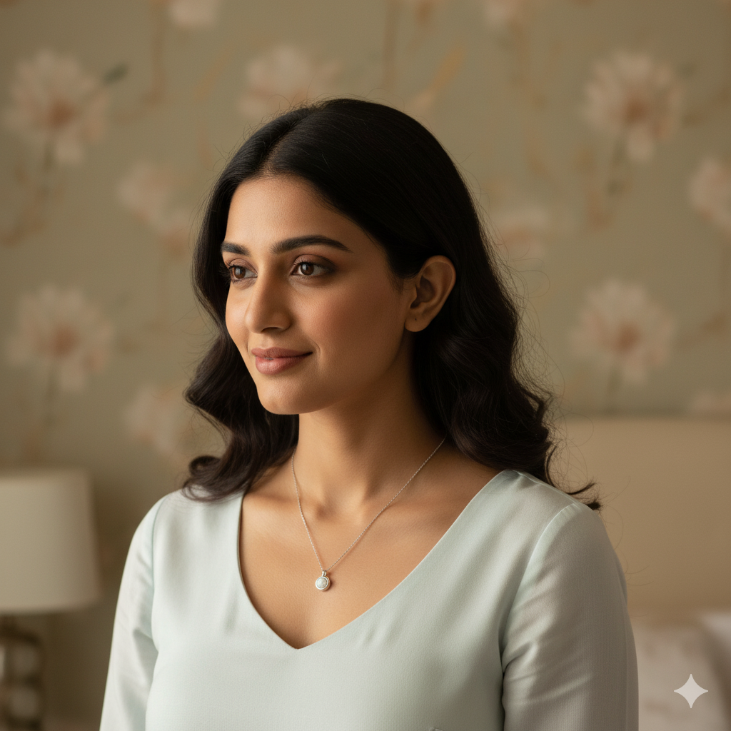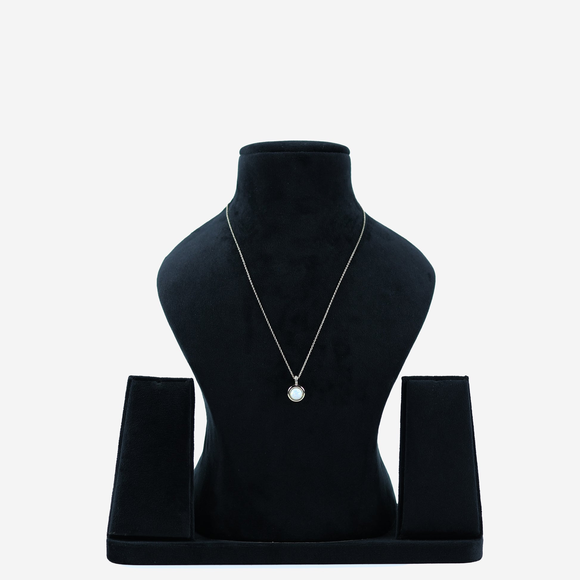 The Aanura Opal Glow Pendant Necklace embodies subtle elegance and natural beauty. Handcrafted in hallmarked 925 silver, it features a luminous round opal stone set within a smooth bezel frame. Its soft iridescent glow reflects light beautifully, adding a refined touch to your everyday or evening look.