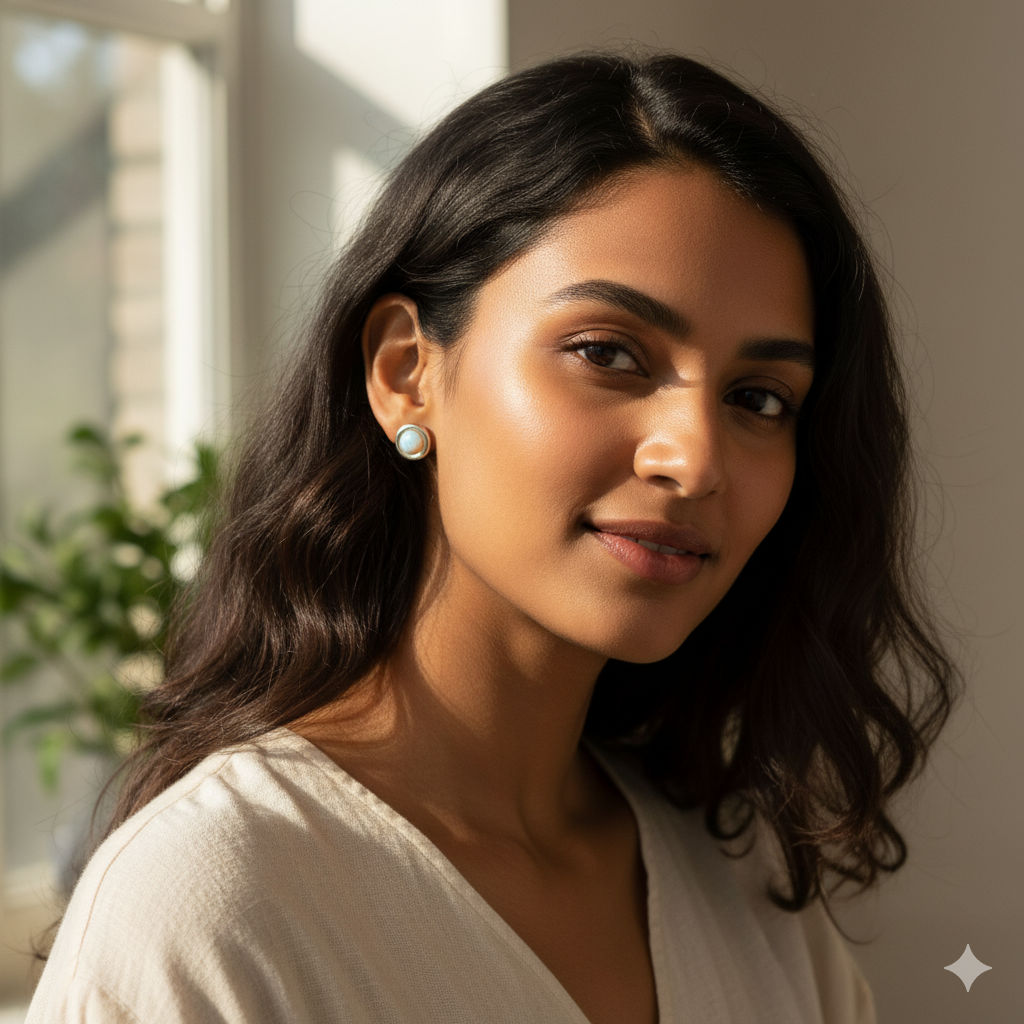 The Aanura Opal Glow Stud Earrings embody subtle sophistication and celestial beauty. Handcrafted in hallmarked 925 silver, these earrings feature radiant opal gemstones with mesmerizing hues that shift under the light. Their clean, round silhouette makes them a versatile choice for everyday wear or elegant occasions.