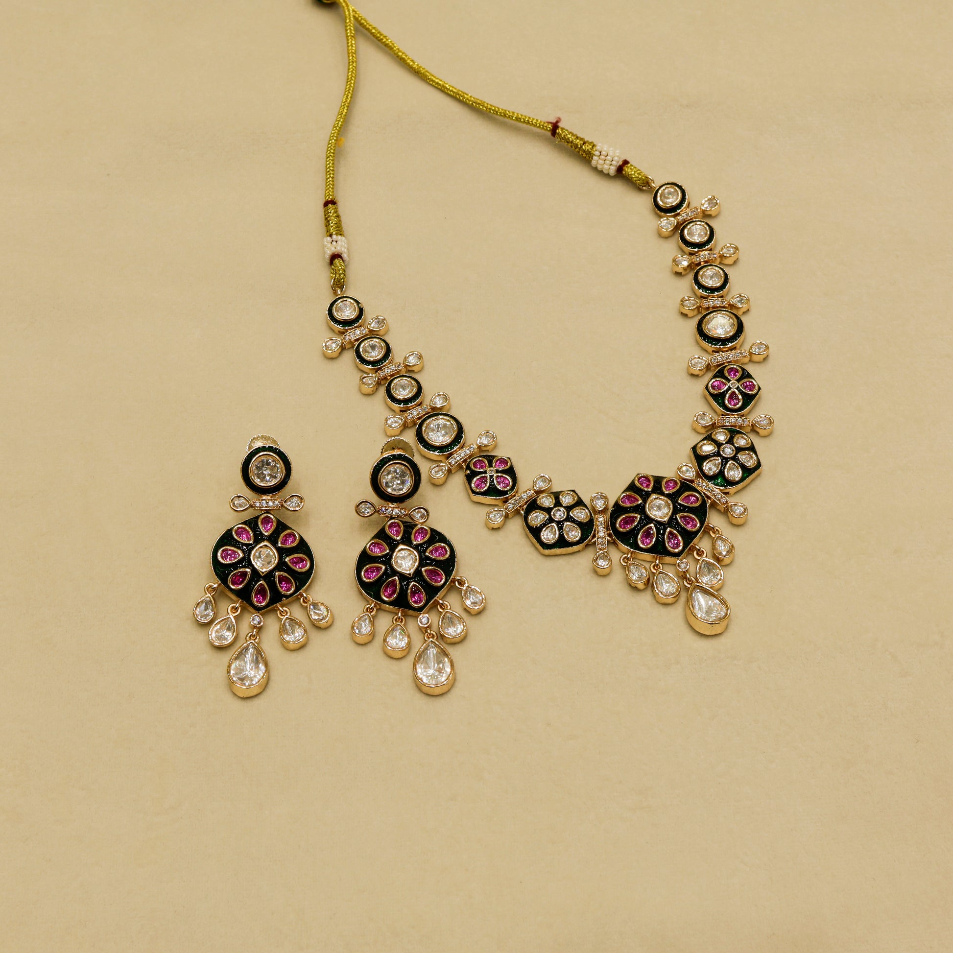 Aanura Purple Kundan Pendant Necklace & Earrings