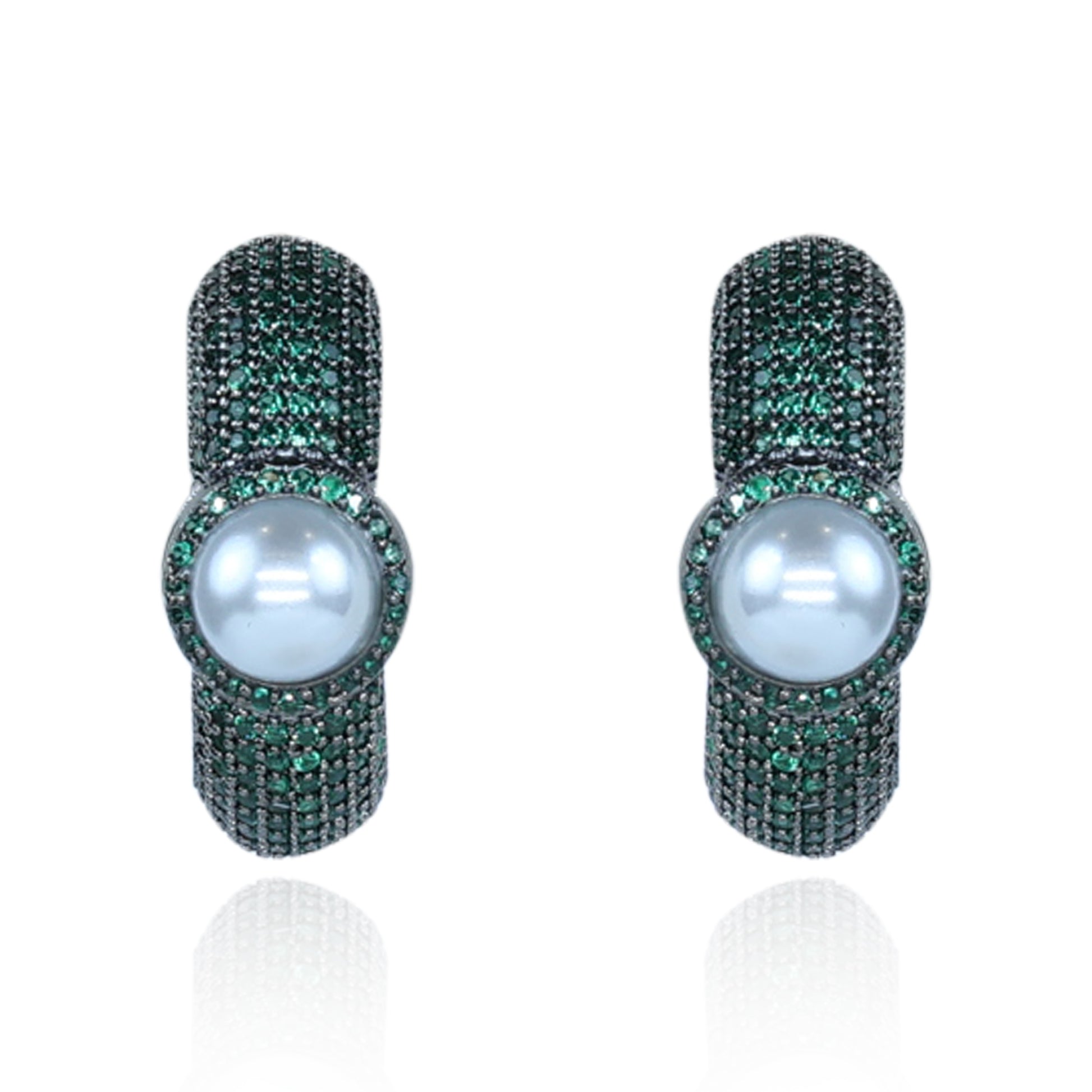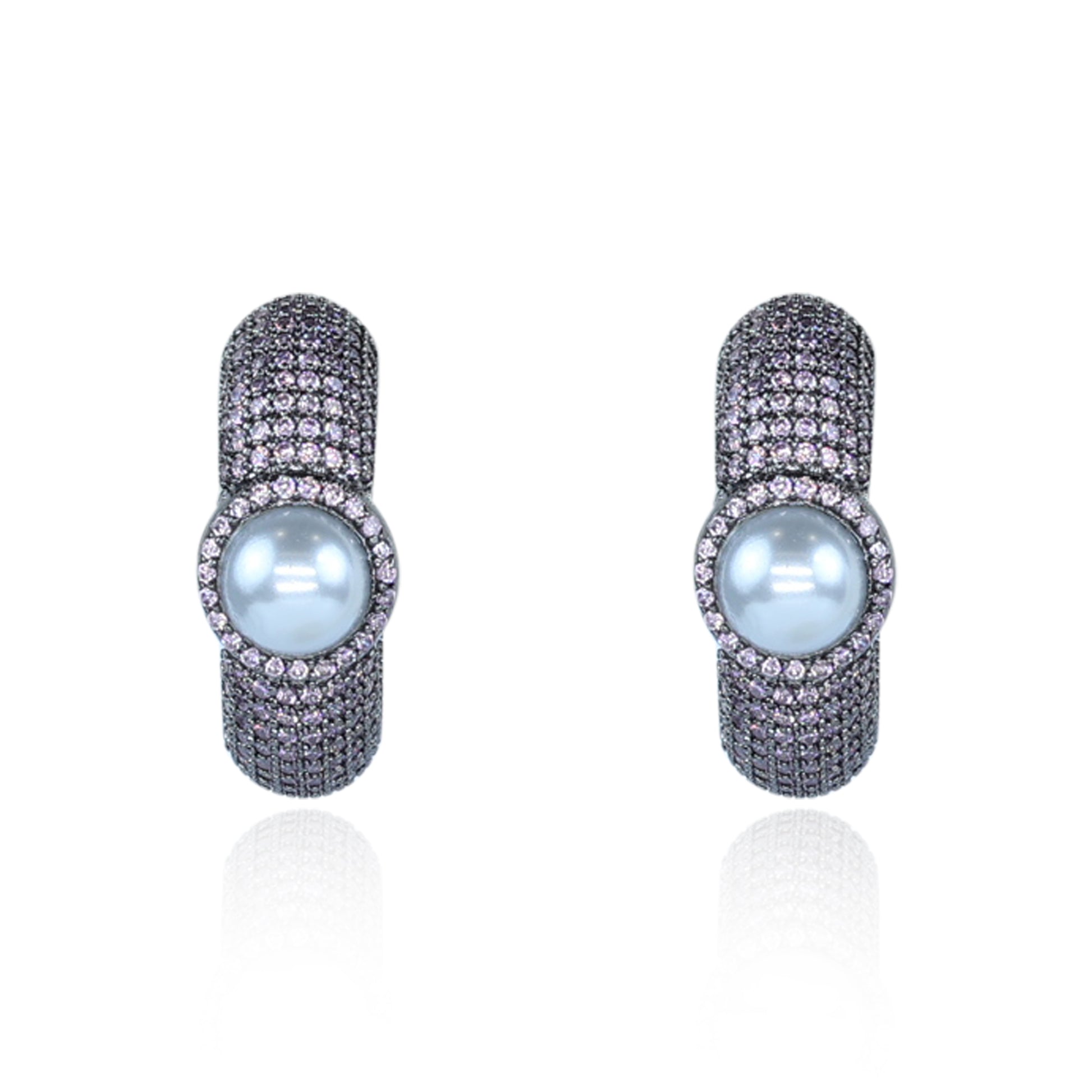 These earrings feature a rich blend of classic pearls with the dazzling effect of pavé-set stones. The deep purple hue adds regality, making them versatile for day-to-night looks.