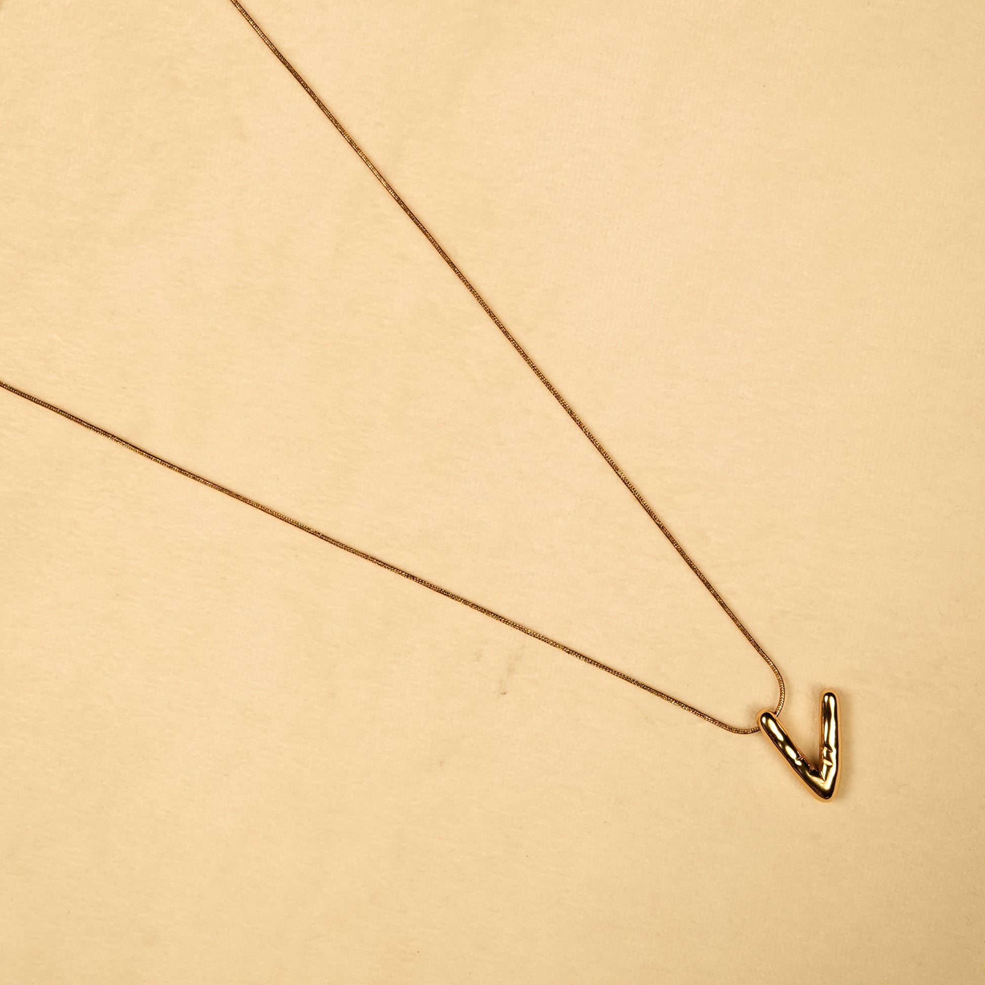 This contemporary Aanura necklace features a smooth, sculpted V-shaped pendant with a soft curved profile and high-polish finish. Minimal yet expressive, the fluid form adds a modern edge while keeping the design elegant and wearable. Crafted for women who love clean silhouettes with subtle statement appeal.