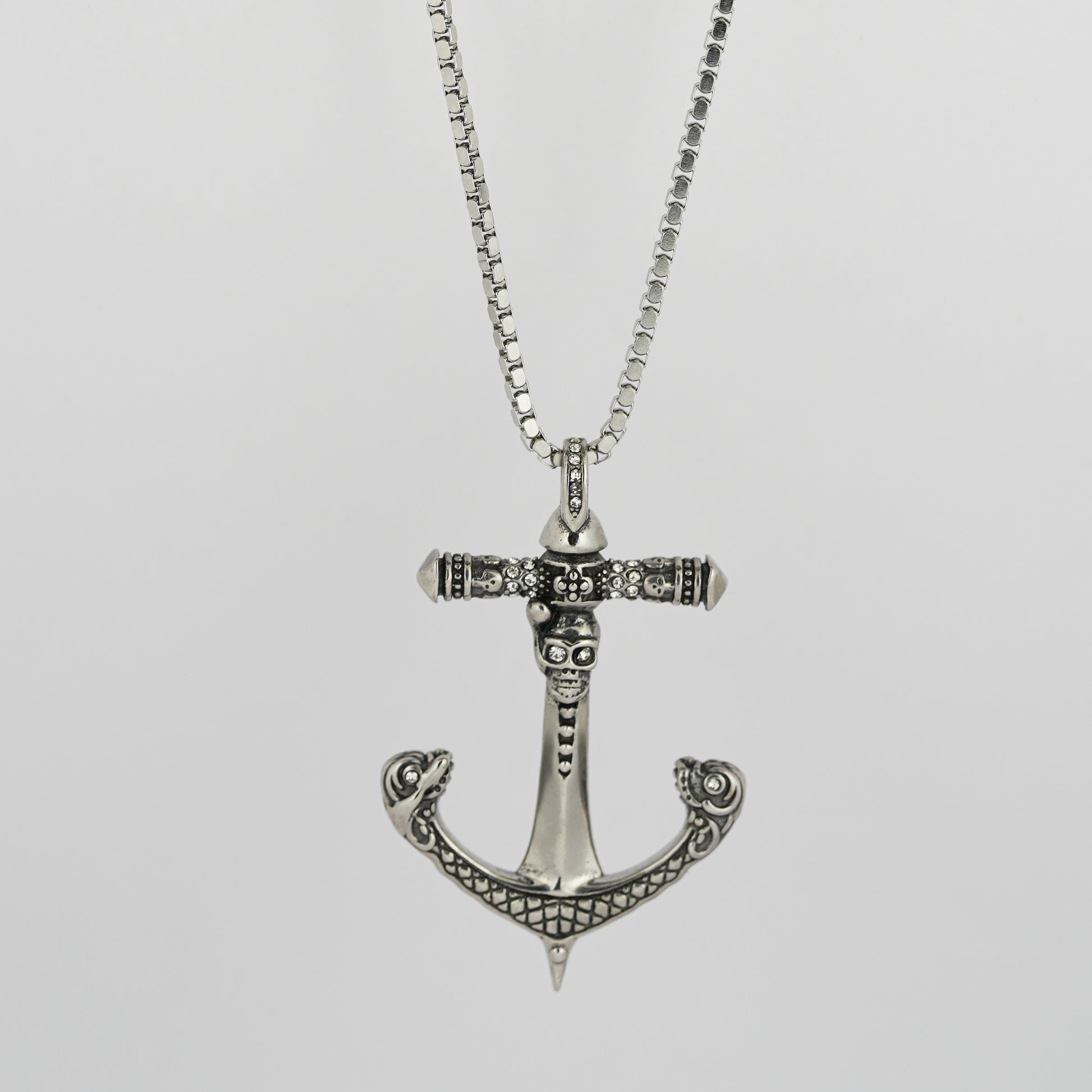 - Design Detail: Anchor-style cross pendant with engraved accents