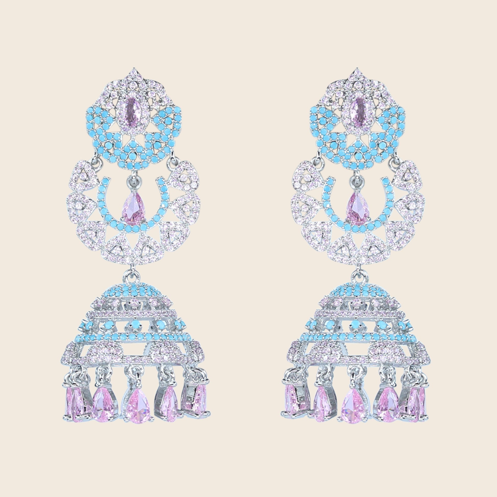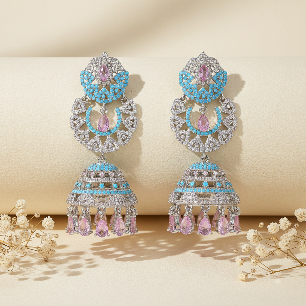 The Aanura Silver Pink Crystal Oval Drop Earrings are the ultimate choice for women who want elegance with a bold festive sparkle—ideal for weddings, parties, and glamorous occasions.