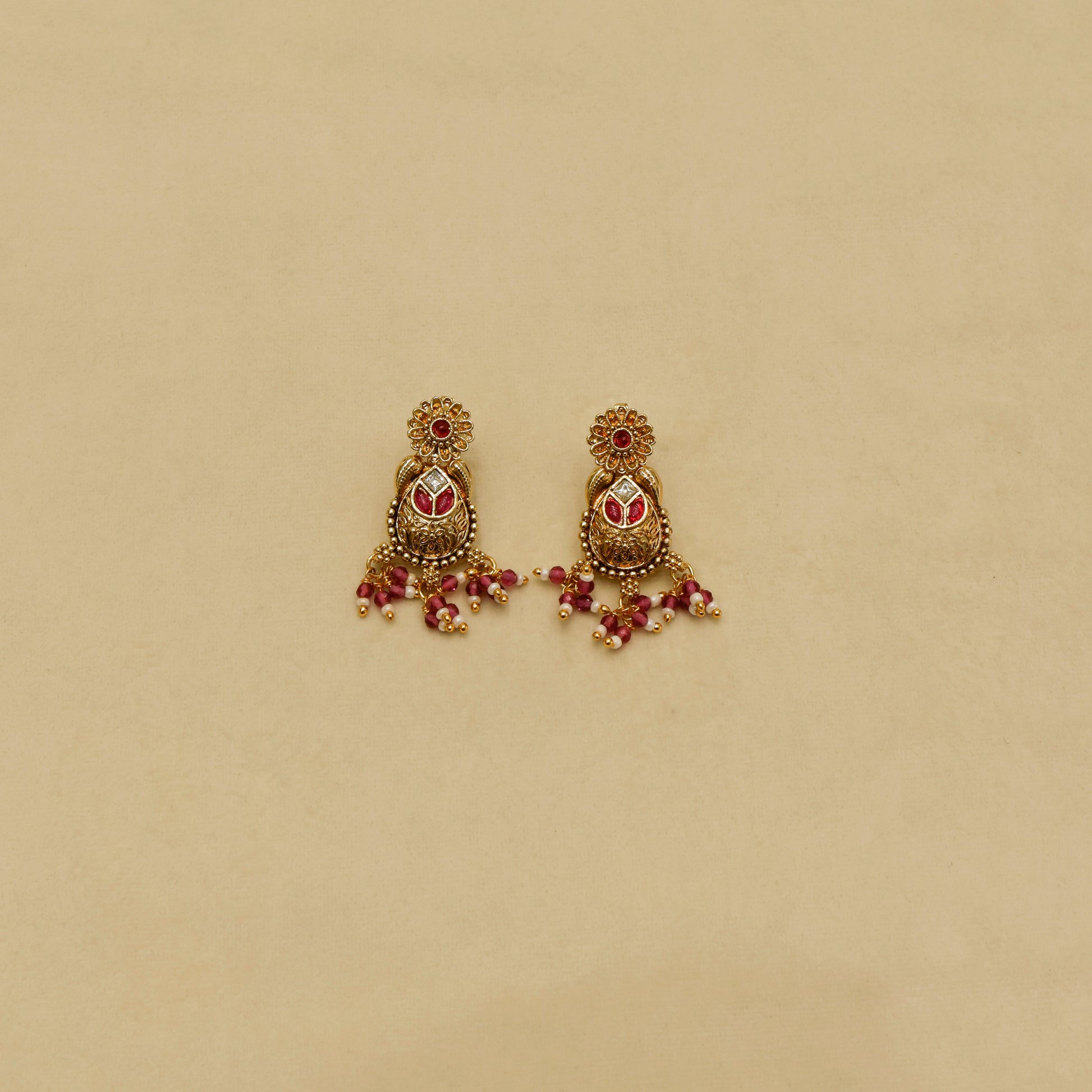 Aanura Temple Bridal Necklace with Ruby & Bead Strands