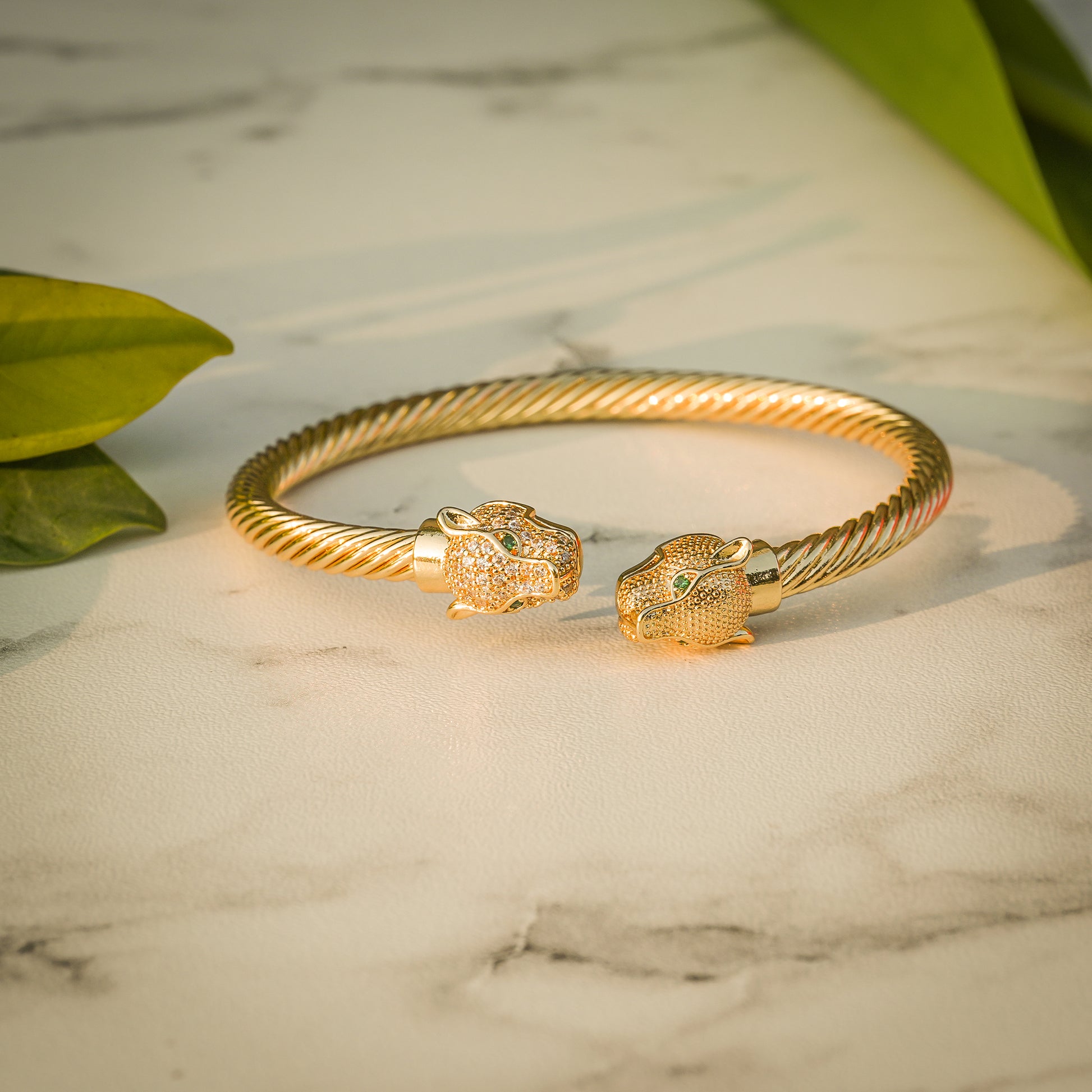 - Design Detail: Twisted rope cuff with dual panther head terminals