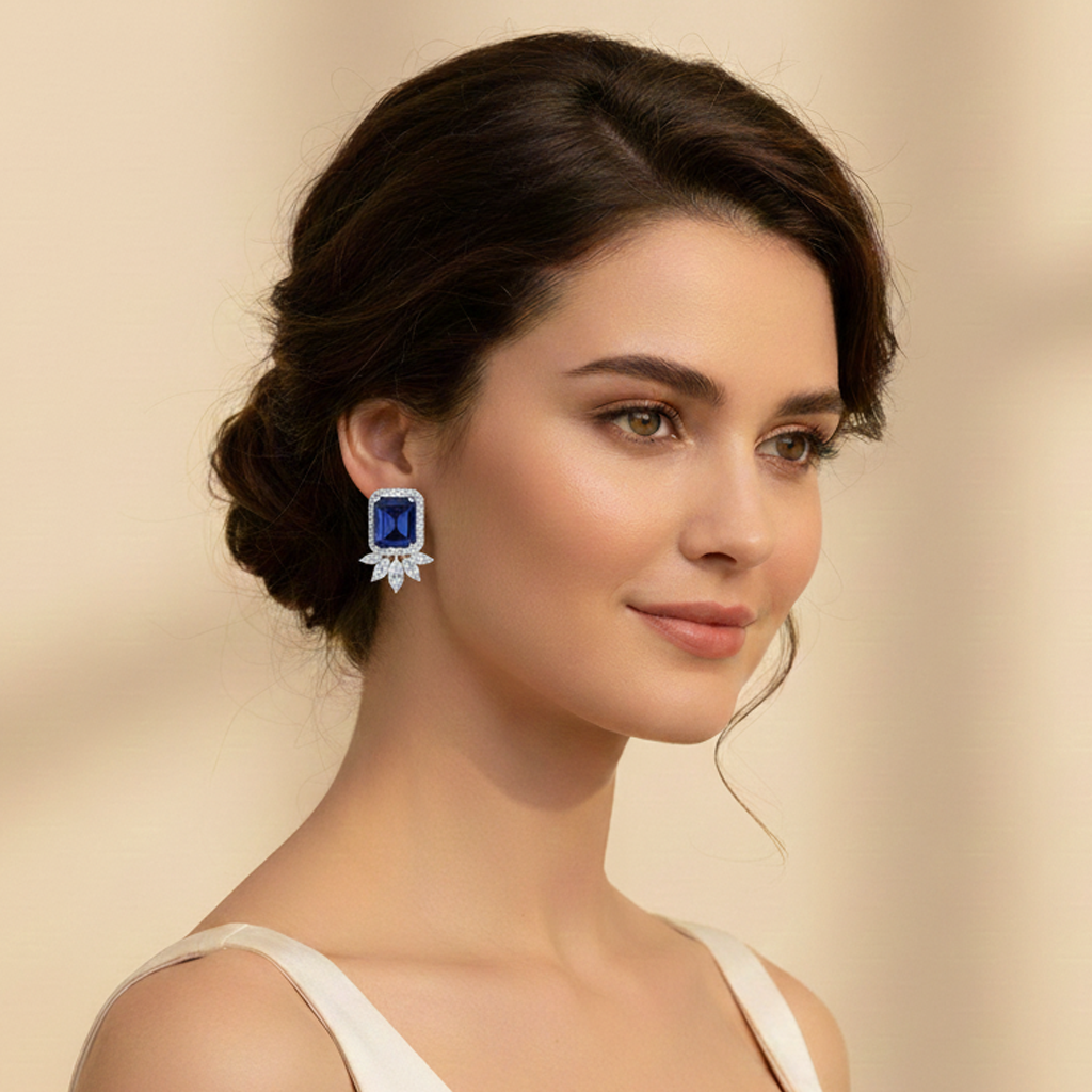The Yellow Cushion-Cut CZ Cluster Earrings blend cheerful brightness with timeless elegance. Perfect for weddings, festive wear, and parties, they elevate any look with radiant sparkle.