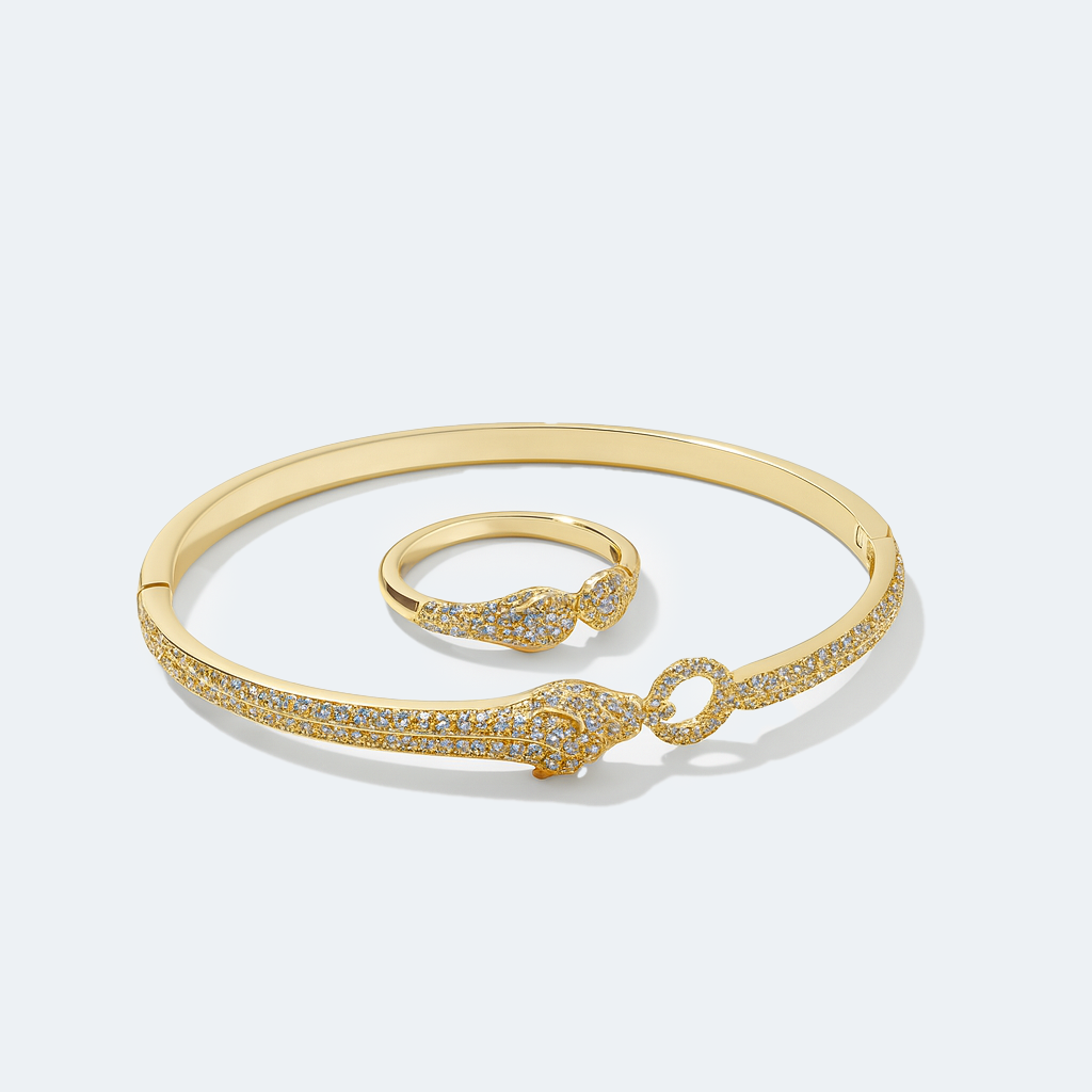 - Design: Panther-inspired crystal-encrusted bracelet with matching ring